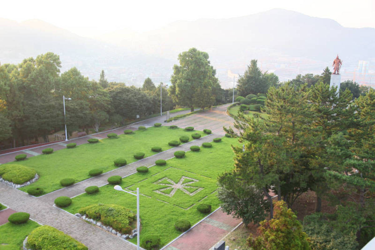 이순신 장군 동상과 상징적인 분수가 있는데 23번 전투를 기념하며 분수가 약 18m 높이로 뿜어 올라갑니다.